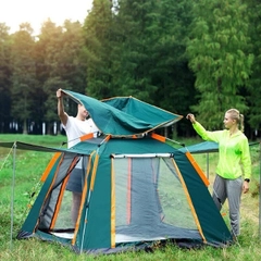 Lều dã ngoại tự bung 2 mái hiên 4 cửa cho 3-4 người ( 240 x 210 x 142cm) giúp con người hưởng thụ cuộc sống ngày càng hiện đại và phát triển, muốn hướng về sống giữa thiên nhiên rộng lớn. Vì thế các hoạt động dã ngoại cuối tuần trở nên phổ biến và thu hút đông đảo du khách tham gia từ giới trẻ cho đến hộ gia đình. Trong đó không thể bỏ qua cắm trại tăng tinh thần đoàn kết, đem lại nhiều trải nghiệm và kỷ niệm khó quên sau mỗi chuyến đi.